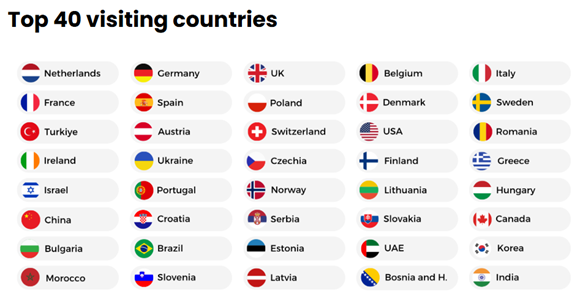 - les services de nos Conseillers Economiques et Commerciaux en poste aux Pays-Bas ou dans les pays où vous souhaitez exporter (75% de visiteurs étrangers) se tiennent à votre disposition pour soutenir vos efforts de prospection réseau à l'étranger.