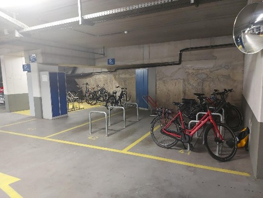 - Nous disposons d’un parking vélo sécurisé au -1 (emplacements 41 à 44), accessible via la rue de l’Intendant. Signalez votre présence au gardiennage via l’interphone.